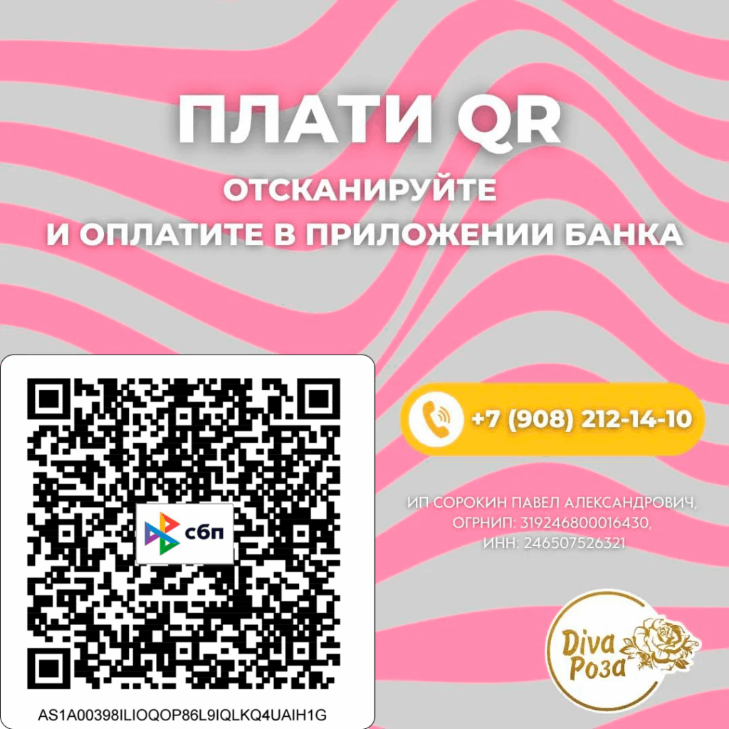 После того как флорист подтвердит стоимость заказа, вы можете оплатить его удобным способом — через Систему быстрых платежей (СБП) по QR-коду.
