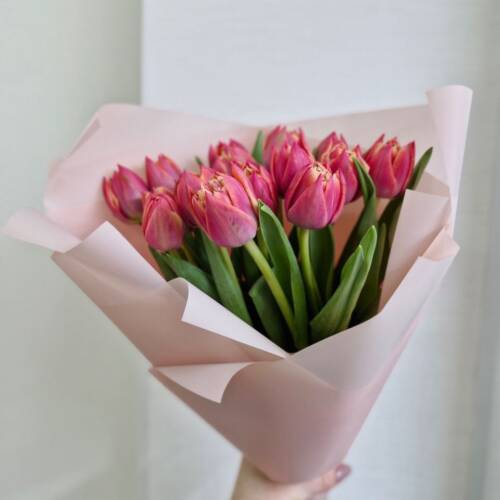 Любой бюджет. У нас можно купить тюльпаны недорого для больших корпоративных букетов или выбрать премиальную упаковку для особого случая.