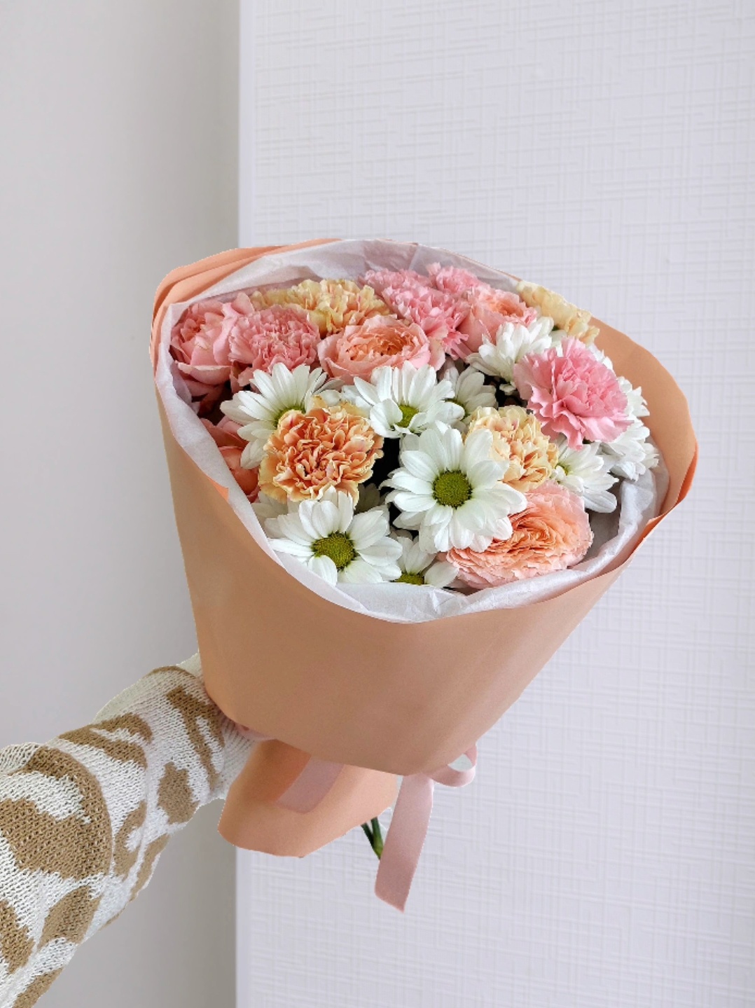 Изысканный букет «Крем-брюле» — это нежный подарок, наполненный теплом и уютом. Его кремово-пастельная гамма, составленная из пышных кустовых хризантем, благородных кустовых роз и нежных гвоздик, напоминает о самом изысканном десерте и создает ощущение нежности и спокойствия. Каждый цветок собран вручную опытным флористом по спиральной технике, что гарантирует гармоничный вид и долгую свежесть композиции.
